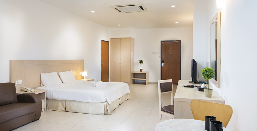 - Unit suite OYO SURAKARTA yang luas dirancang dengan perabotan King Bed atau 2 x Full Size Bed (4 kaki)