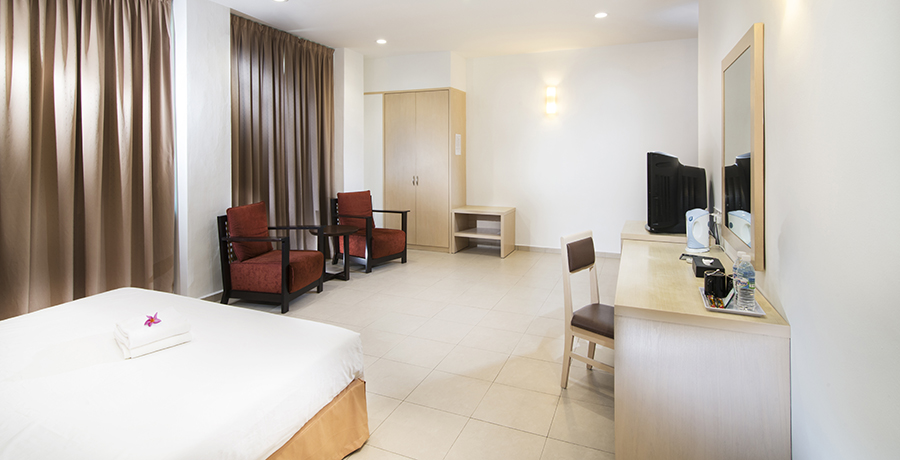 - Unit yang luas dengan perabotan King Bed atau Twin Bed
